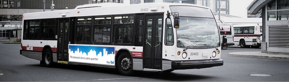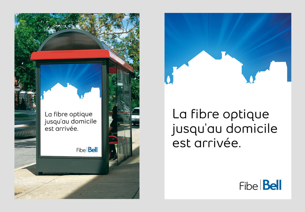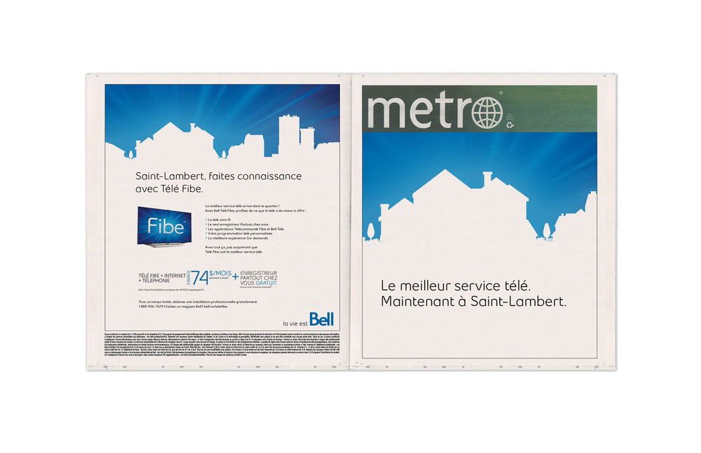 Publicité imprimé créé chez LG2 pour le lancement de Bell FIBE en banlieue de Montréal
