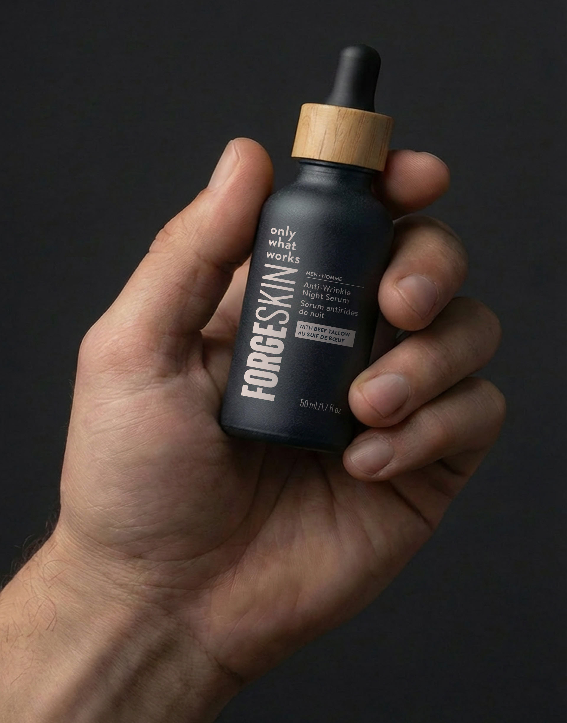 Gaspard a développé une stratégie de marque complète pour positionner Forge Skin comme une référence crédible et assumée dans l’univers des soins. Guidée par le slogan ONLY WHAT WORKS, la marque adopte une posture claire, honnête et sans artifice : des formulations efficaces, des ingrédients justifiés, rien de superflu.