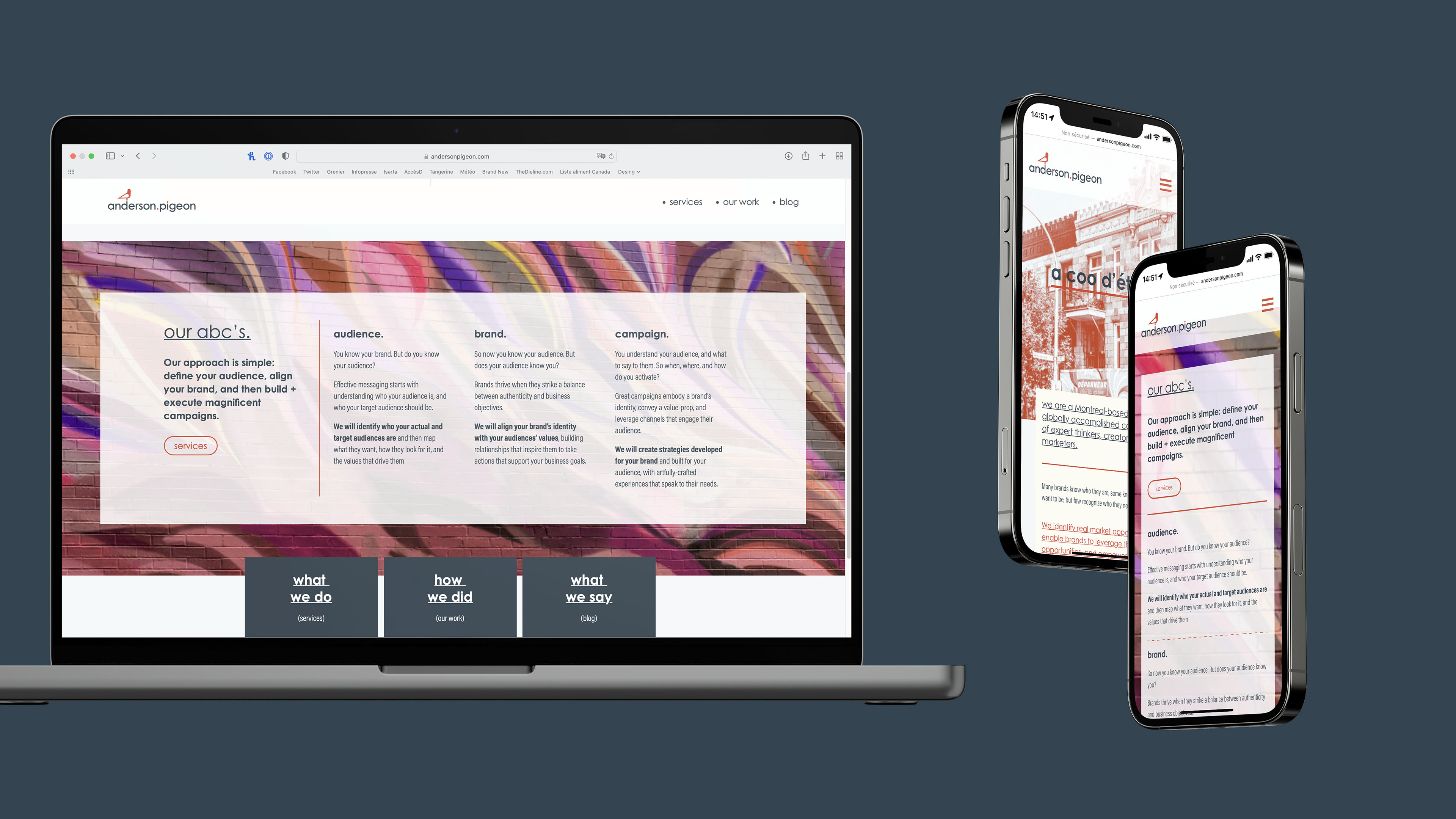 Anderson Pigeon est une agence Montréalaise née en 2021. Basé sur leur guide de normes, j'ai eu la chance de créer leur site Internet.